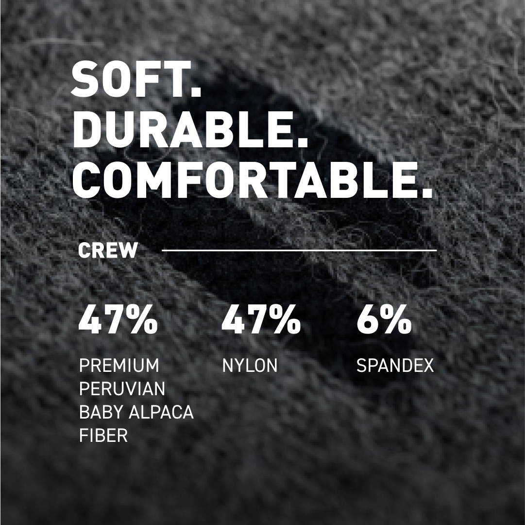 Alpaca wicks away sweat fast, keeping your feet dry and blister-free.